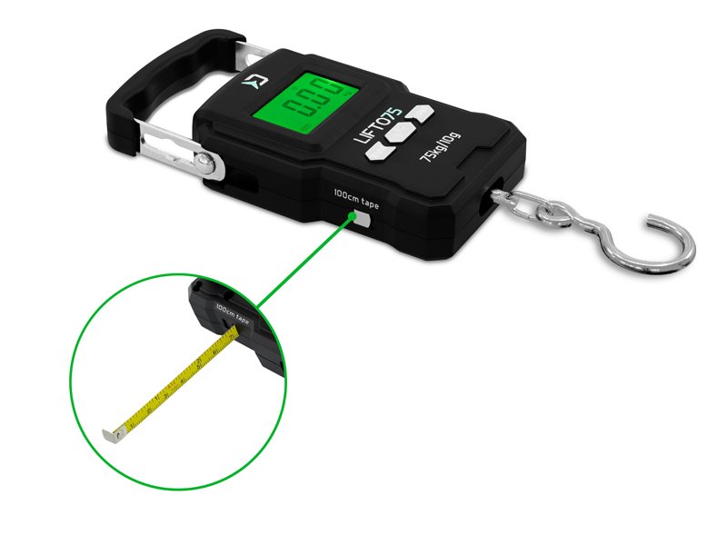 Ak existuje dokonalá váha pre rybára, je to určite LIFTO! Táto nabíjateľná digitálna váha umožňuje meranie hmotnosti v rozmedzí od 10g až do 75kg s vysokou presnosťou. LIFTO má jednoduché ovládanie pomocou troch tlačidiel. Zapnutie, resp. vypnutie váhy prebieha zatlačením stredného tlačidla s označením Power ON. Krátkymi stlačeniami tlačidla UNIT je možné meniť jednotky hmotnosti (kg, lbs, JIN, oz), zobrazované na displeji. Štvrtým stlačením tlačidla UNIT prepnete váhu do formátu teplomeru, ktorý Vám ukáže aktuálnu teplotu v °C. Podsvietenie displeja cez jasný deň môžete vypnúť 2 sekundovým podržaním tlačidla UNIT, čo prispieva k šetreniu batérie . Funkcia TARE umožňuje vynulovanie záťaže na háku, čo je vhodné pre váženie ryby bez skresľujúceho údaju vážiacej tašky.