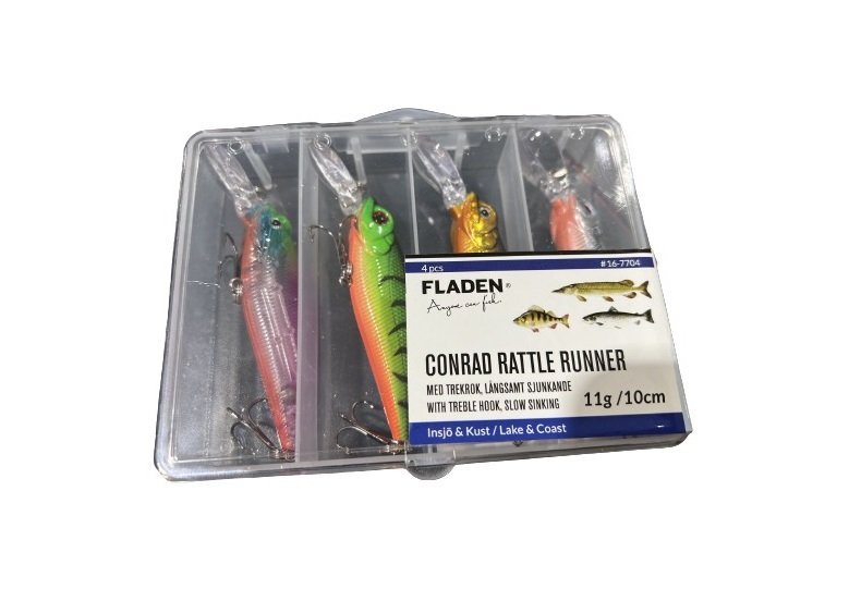 Za skvelú cenu vám prinášame sadu najobľúbenejších woblerov od švédskej značky Fladen. Sada woblerov Conrad Rattle Runner Slow obsahuje 4ks woblerov s dĺžkou 10cm a stredne veľkou lopatkou, ktoré sú určené na chytanie všetkých našich stredných dravcov ako sú šťuky, zubáče či veľké ostrieže. Woblery sú mierne potápavé čiže po zastavení kľučkou začnú vyklesávať ku dnu. Stredne veľká lopatka umožňuje prechytať takmer všetky partie jazier do hĺbky 2m.