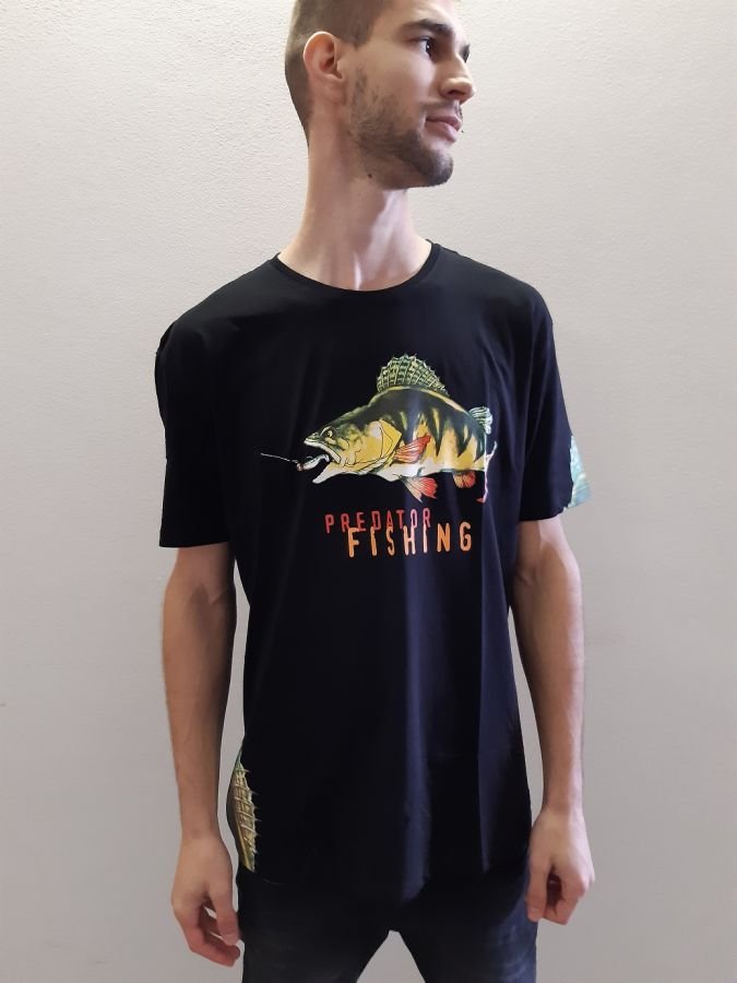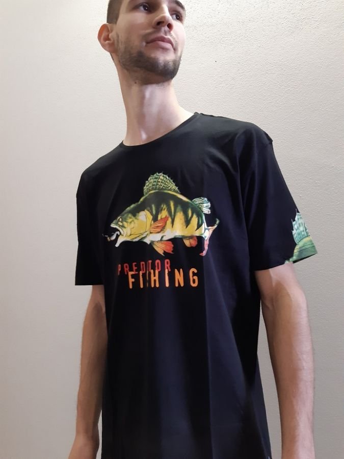 Tričko Greedy Perch v čiernej farbe s obrázkom ostrieža. Kvalitne spracované a pohodlné tričko s je pekne designovo spracované. Materiál je 100% bavlna.